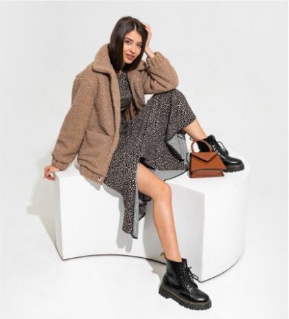 fur coat stylish dress sitting